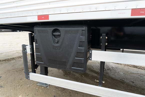 Sistema de tensionamento da lona lateral com catraca reforçada.